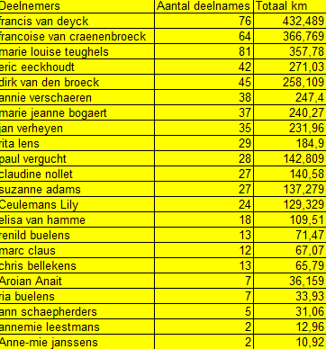 Rangschikking gestapte km wandelaars 2023