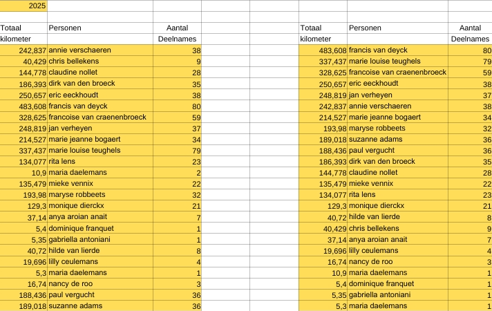 Wandelresultaten 2025
